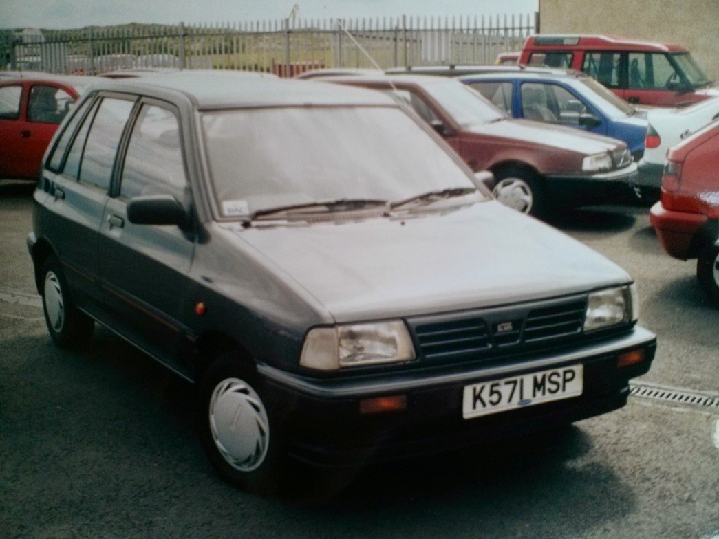 My first car (thanks Dad) was K571 MSP a Kia Pride. Bit of a strange name but to be fair, other than having a noisy alternator it never broke down once and did give me my freedom, if not driving thrills. Here it is about to find a new owner at Shotts Auctions