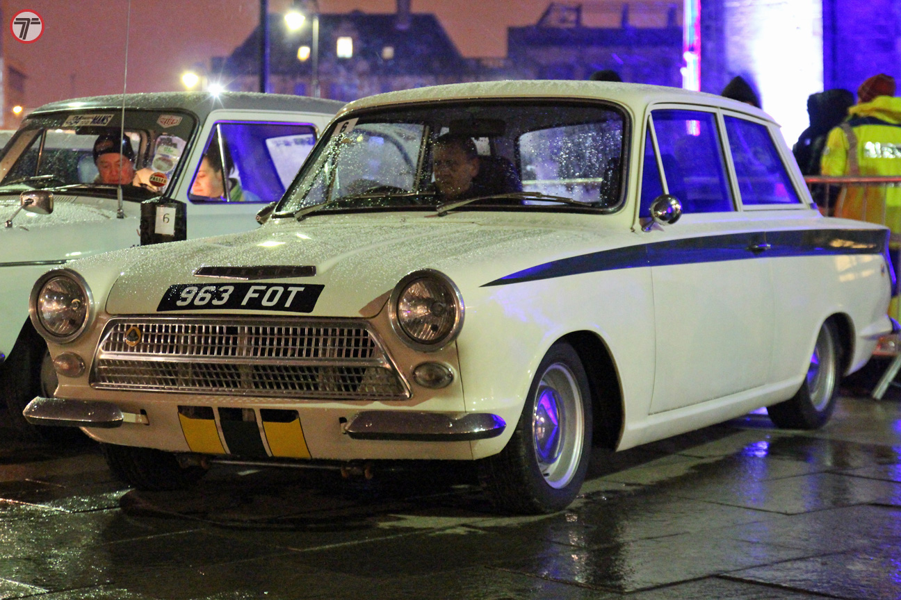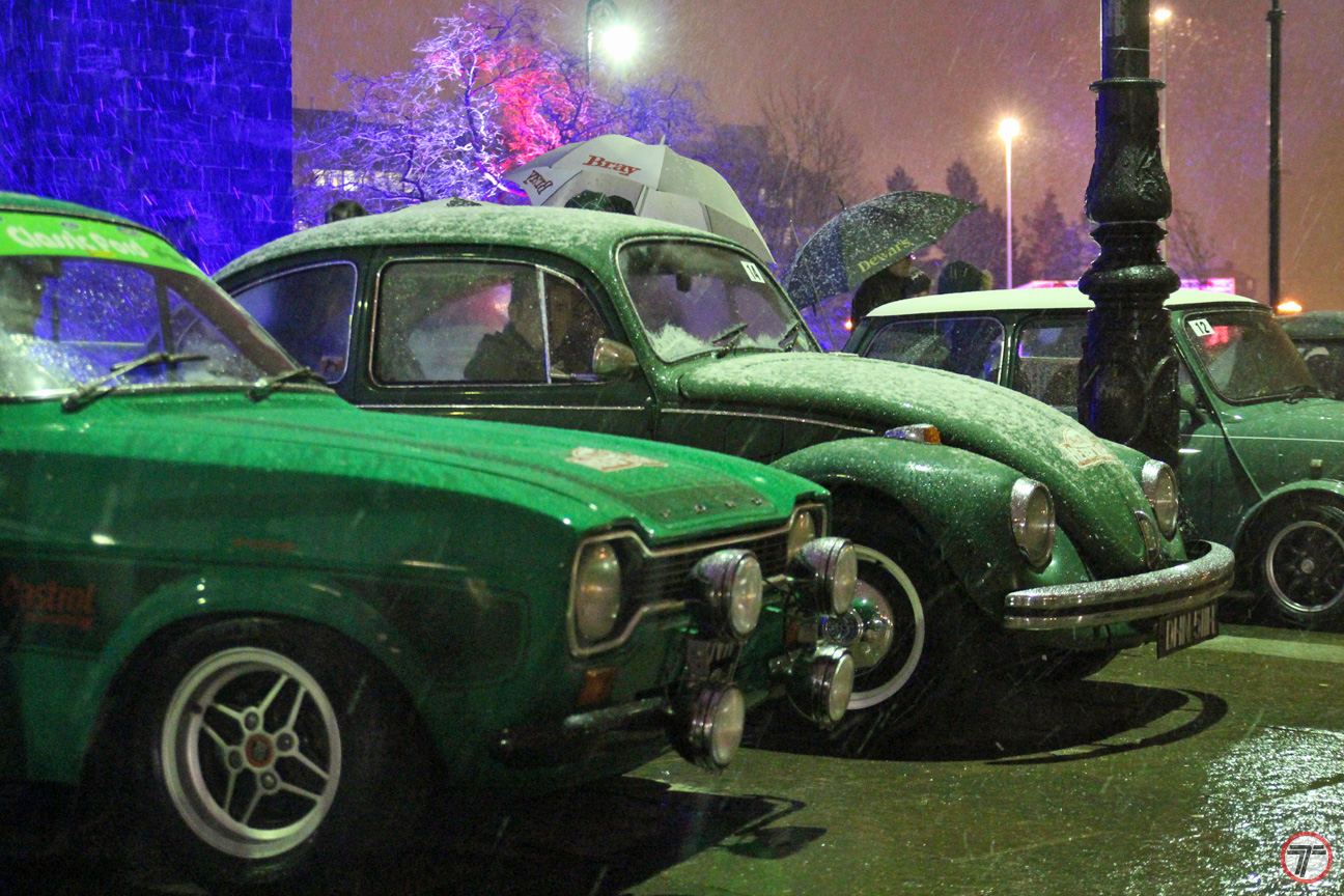Although the weather on the night wasn’t exactly ideal for spectating (cold, wet & snowing!), there was still a decent turnout to watch the cars set off off. First to go was Commonwealth judo gold medallist and Royal Marine Chris Sherrington in his 1966 Triumph Spitfire Mark II which he’s rebuilt himself. Β Along with his wife, they are driving to Reims raising money for Help for Heroes.