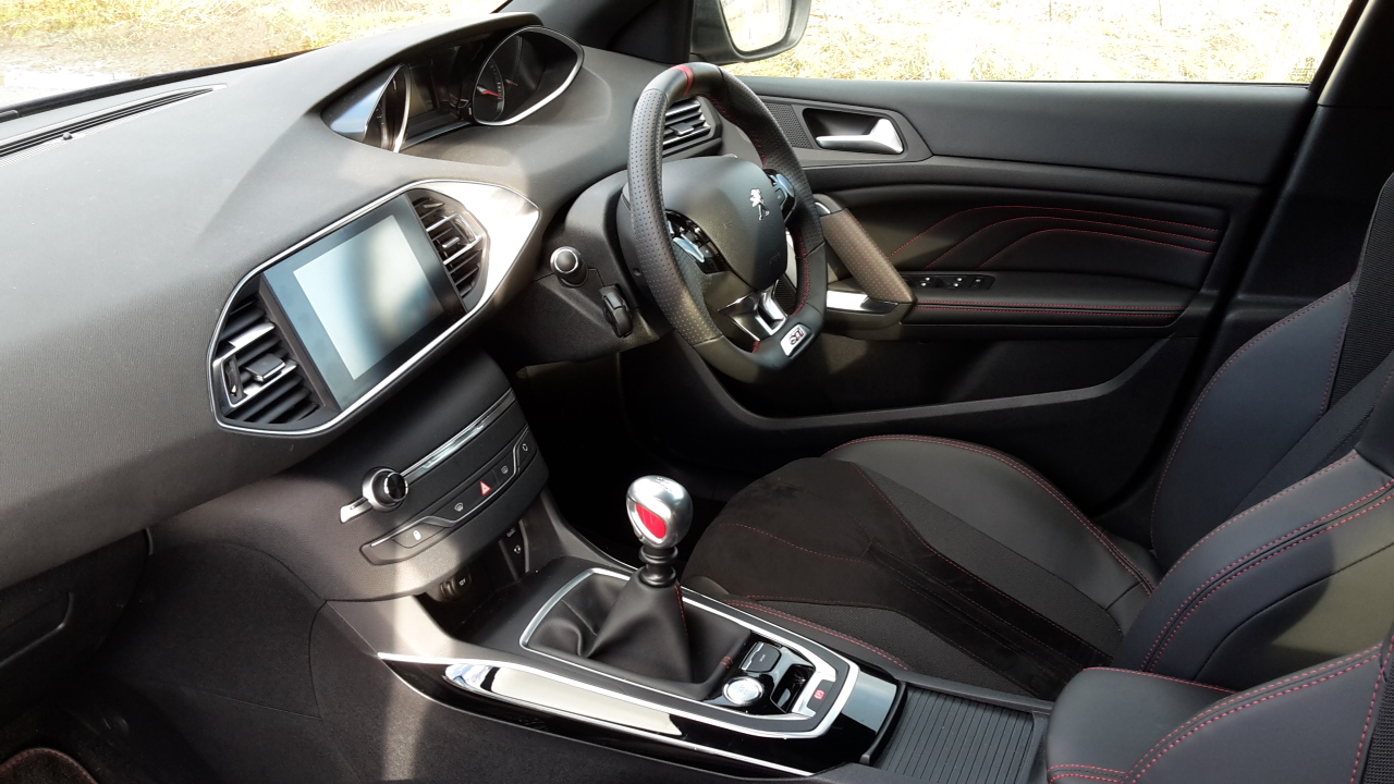 The 308 has evolved into rather a grown up looking machine. It is one of the few cars which I think works better as a 5 door, matching practicality with kerb appeal. Itβs no Alfa but it has a certain βI donβt know whatβ (Rodney) about it that had me looking back after parking it up on several occasions. The purple hue of the test car is another random success story which, on paper, sounded rather garish. Iβd even go as far as to say I like the impact the alloy wheels, which adorn the Gti, have on me. What I donβt like about them Iβll come back to. Make up your own mind as per usual. The interior has a touch of hot wheels Aventador about it but you do have to love that red gear lever.