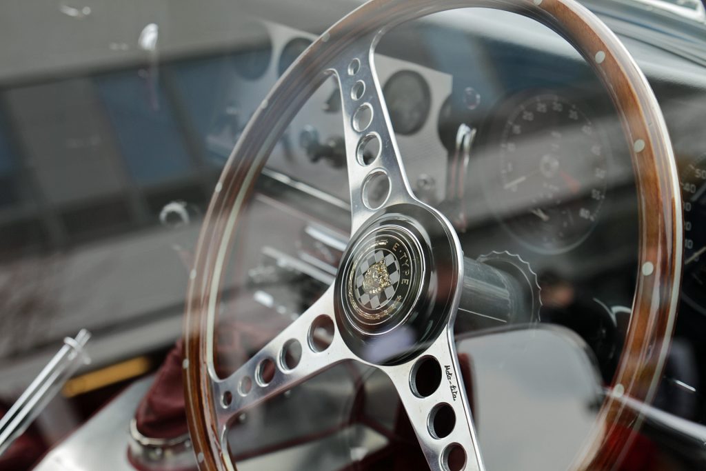 What road trips has it been on: Β Quiet a few adventures. Β I drive it a lot. Β One of the stand out moments was following/leading the E-TypeΒ from the first “Italian Job” film – no it didn’t die in the making of the film! It is now owned by Philip Porter who has published many car books including many on E-Types and also owns the original Geneva motor show car. Β There was a Round Britain Coastal Drive in aid of Prostate cancer and I was asked if I could lead him from Dumfries to Largs and we only had X hours. Β What a drive! The cars were amazing.