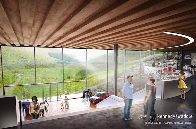 “The location of the proposed building at Rest and Be Thankful, Argyll, has great significance in motorsport terms because of the famous hill climb races,” said Douglas.