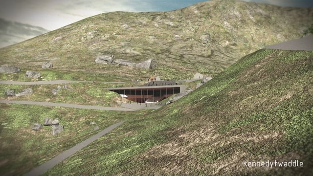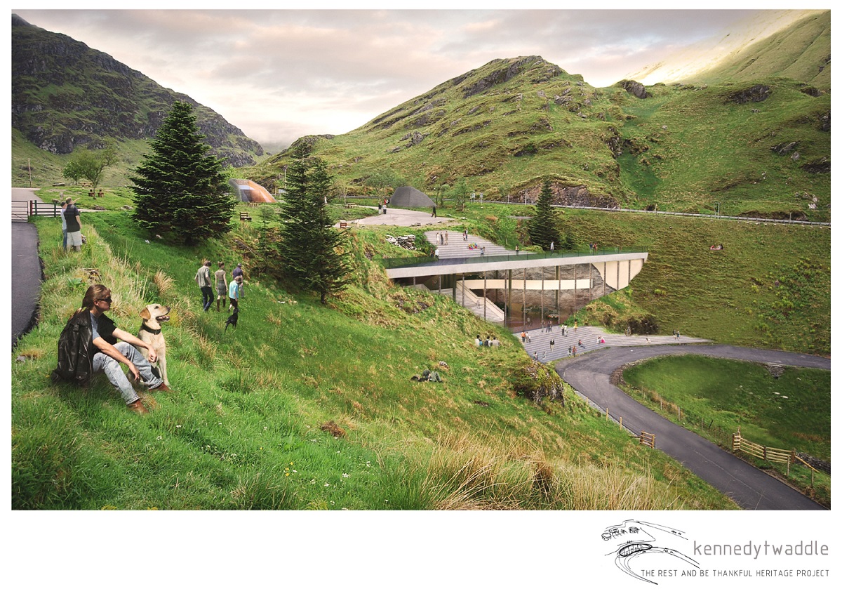 The proposed building, nestling within the contours of the mountainside, has been designed by award-winning architects KennedyTwaddle Architectural Design to utilise the stunning vista at the summit of the glen – already a favourite stopping place.